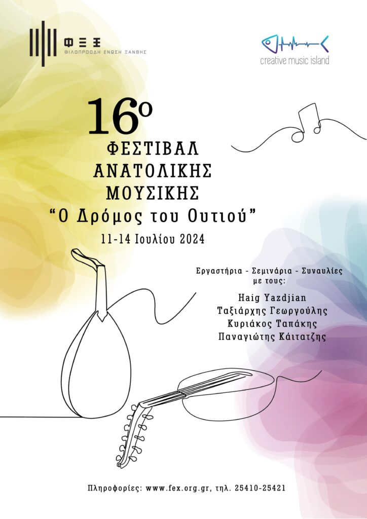 Στα πλαίσια των πολιτιστικών και εκπαιδευτικών της δράσεων, η Φιλοπρόοδη Ένωση Ξάνθης σε συνεργασία με την Creative Music Island, διοργανώνει το 16ο Φεστιβάλ Ανατολικής Μουσικής με τίτλο “Ο δρόμος του Ουτιού”.