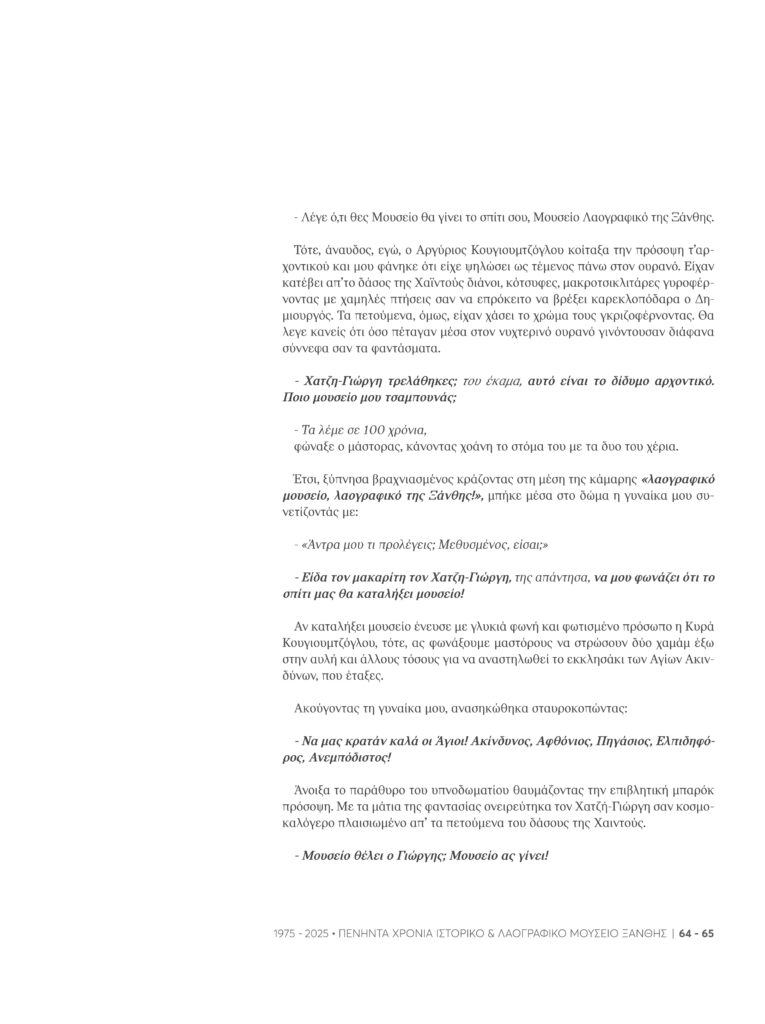 Τα διηγημάτα έχουν δημοσιευθεί στο επετειακό ημερολόγιο της ΦΕΞ για το έτος 2025 με τίτλο: “1975-2025 50 Χρόνια Ιστορικό & Λαογραφικό Μουσείο Ξάνθης” το οποίο διατίθεται προς πώληση στο eshop της σελίδας και στο πωλητήριο του μουσείου.