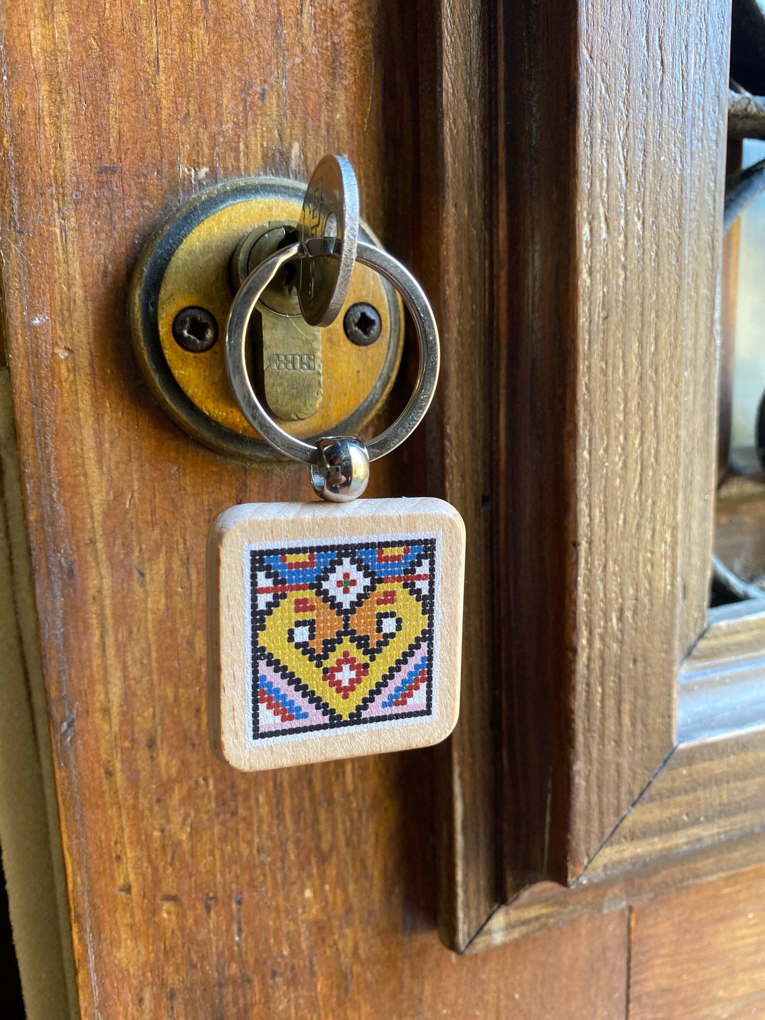 Μπρελόκ ξύλινο με σχέδιο από έκθεμα του μουσείου (καρδιά 1)