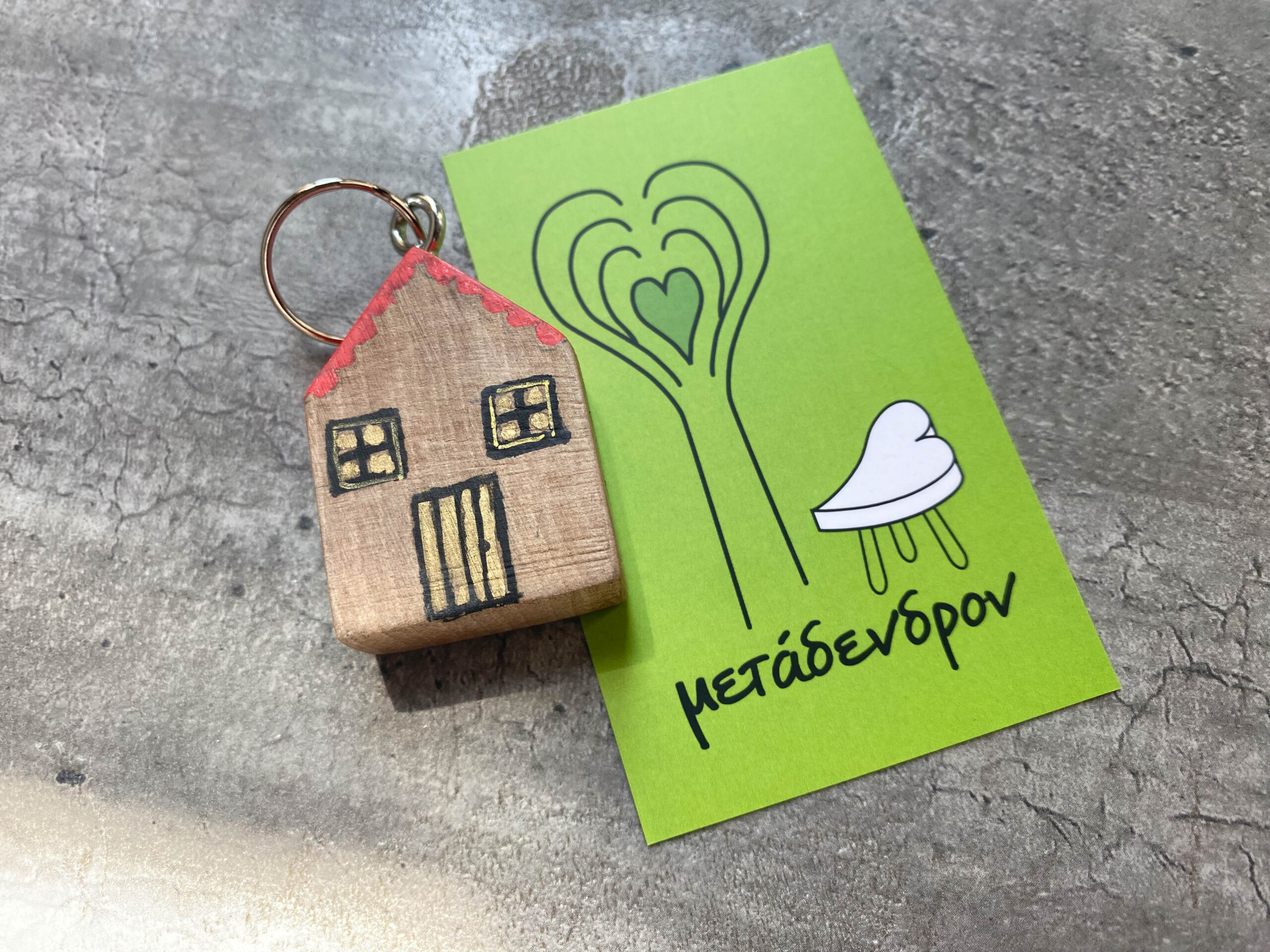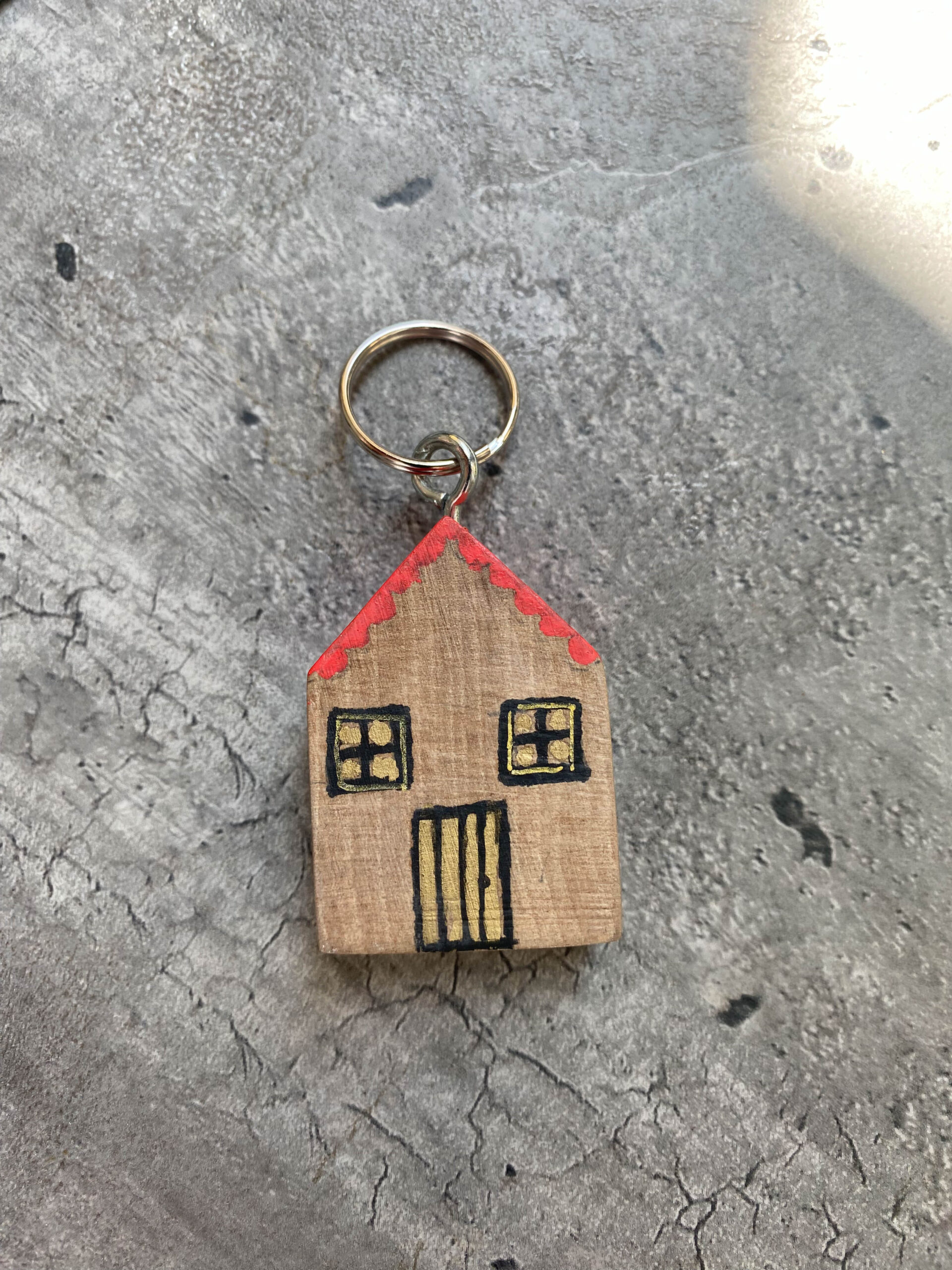 Ξύλινο σπιτάκι μπρελόκ με μεταλλικό κρικάκι για τα κλειδιά, την τσάντα ή ακόμα και διακοσμητικό.