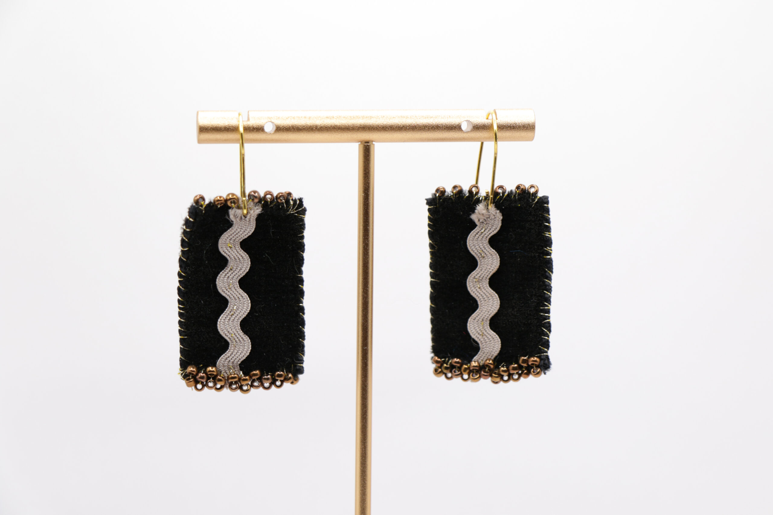 Χειροποίητα σκουλαρίκια με σχέδιο εμπνευσμένο από φορεσιά των Ιωαννίνων. Δημιουργήθηκε για την συλλογή της έκθεσης “ΜΝΗΜΕΣ”, της Ιωάννας Αρβανιτίδου, η οποία πραγματοποιήθηκε στο Ιστορικό & Λαογραφικό Μουσείο Ξάνθης.